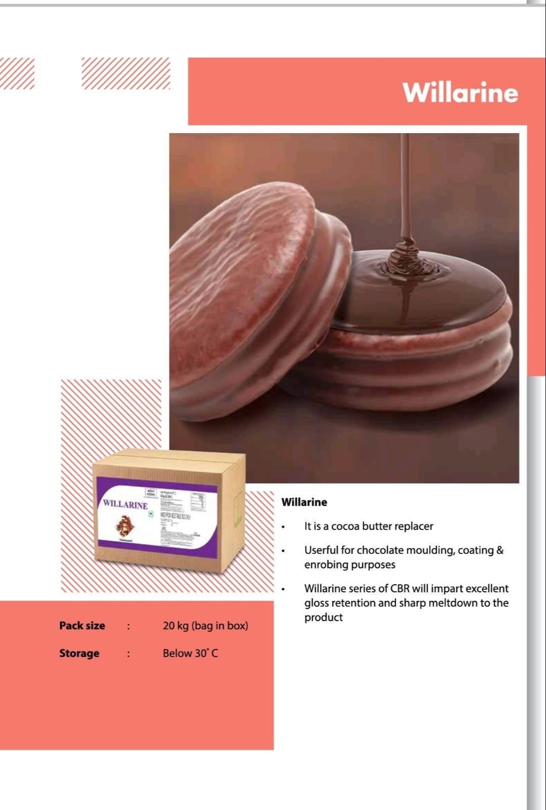 • Willarine series of CBR will impart excellent gloss retention & sharp meltdown to the product.